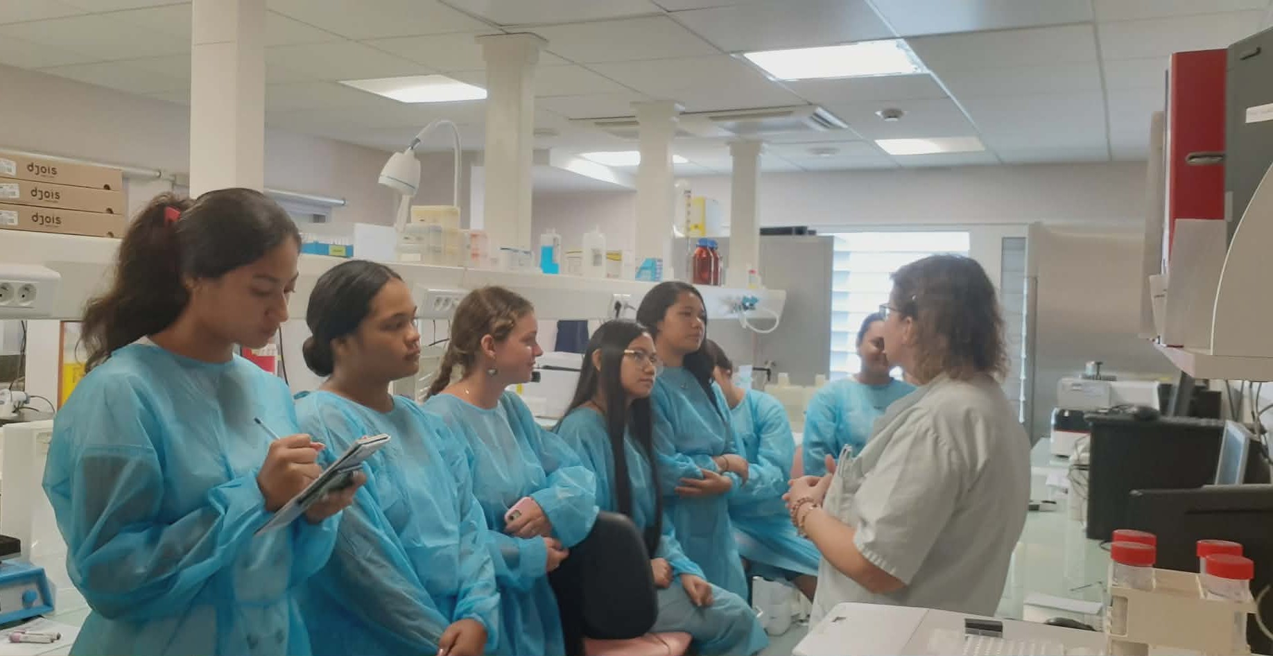 Lundi 19 janvier 2026, la classe de Terminale ST2S (santé et social) a eu la chance de visiter les laboratoires d'analyses médicales de l'hôpital du Taaone: biochimie, biologie, sérologie, HLA.